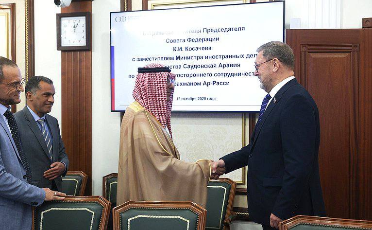 Deputy Chairman of the Federation Council Konstantin Kosachev held a meeting with Abdulrahman Al-Rassi, Saudi Arabian Deputy Foreign Minister for Multilateral Affairs. During the discussions, a positive dynamic in the development of bilateral ties was highlighted.